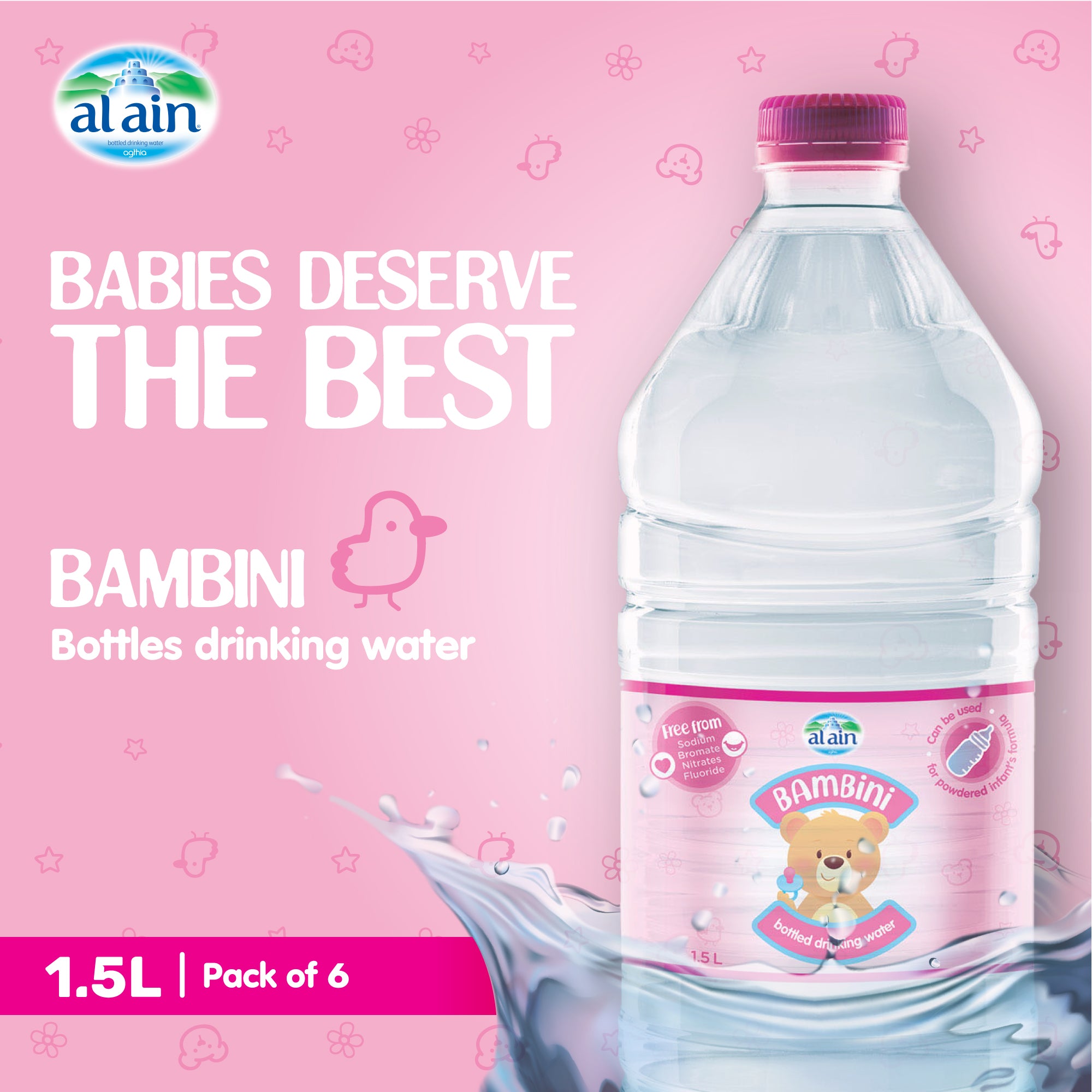 Al Ain Water Bambini, 1.5L Water, Pack of 6, Food Preparation Bottled Water, Ready to Use, Formulated Especially for Babies